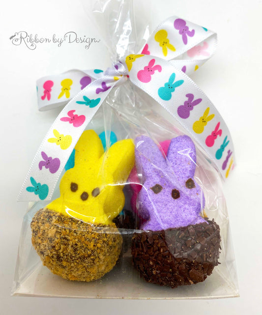 Easter ribbon peeps bunnies for Easter baskets, gift wrap, favors, candy shops, chocolatiers printed on 5/8" white satin