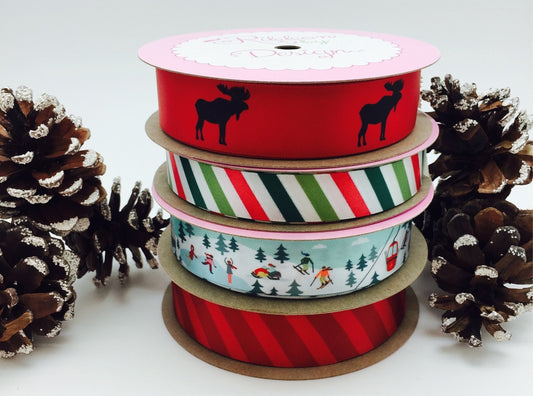 Moose Ribbon in Black Silhouette on 7/8" Red single face satin ribbon