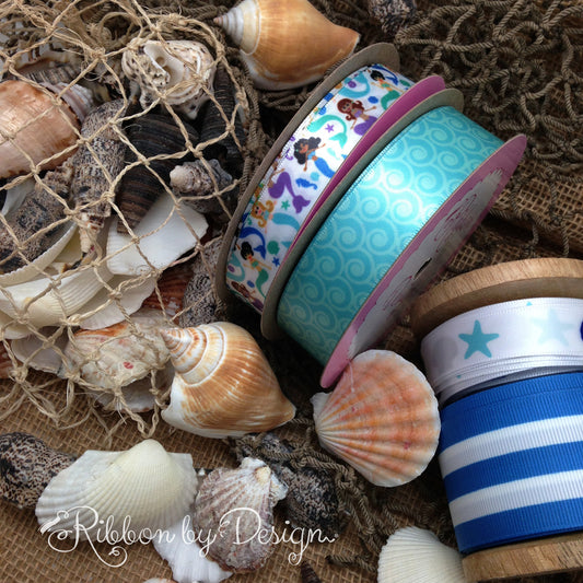 Our versatile beach ribbon pairs harmoniously with other designs, such as the whimsical fish-print ribbon for a splash of charm and the muted elegance of our ocean ribbon for a subtle, tide-inspired aesthetic. Each coastal ribbon design invites imagination and transforms everyday moments into something extraordinary.