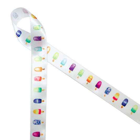 Popsicles ribbon popsicles in pastel watercolors printed on 5/8" and 7/8" white satin