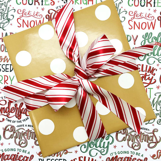 The yuletide season is a time for giving gifts from the heart. When you need to wrap dozens of holiday products or gifts for friends and family, you need colorful Christmas ribbon. We have a wonderful variety of ribbons to accent any of your gifts perfectly. From fun to romance, our selection of seasonal Christmas-themed ribbons will suit all your Holiday needs.
