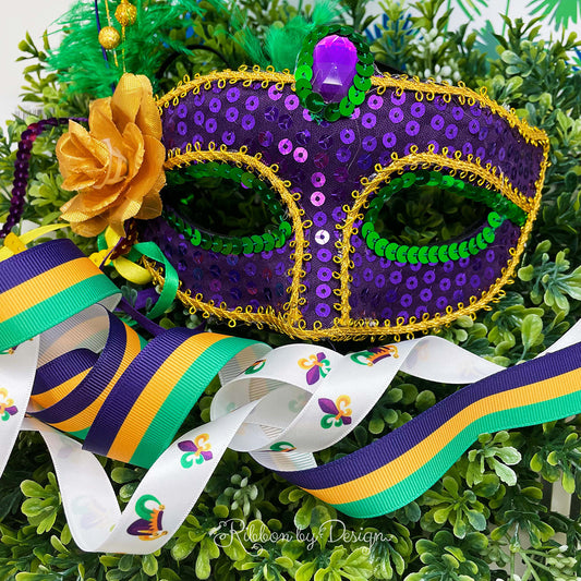 Mardi Gras Ribbon stripes perfect for party decor, gift wrap, cookies, candy, sweet shops, party favors, headbands printed on 7/8" grosgrain
