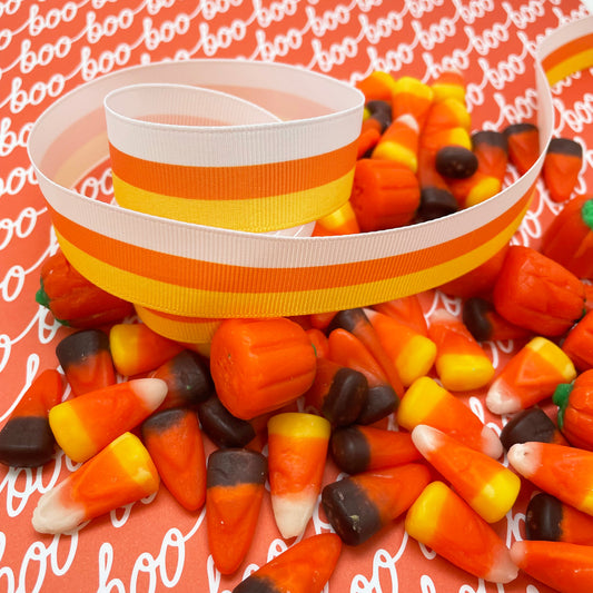 Candy Corn stripe ribbon for Halloween printed on 7/8" grosgrain
