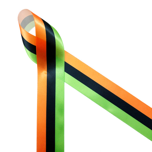 Halloween RibbonOrange, Lime and Black stripes printed on 1.5" satin and grosgrain