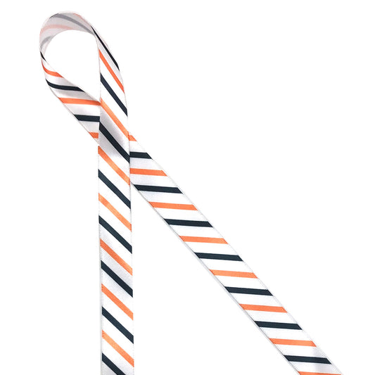 Halloween striped ribbon in orange, black and white printed on 7/8" white single face satin