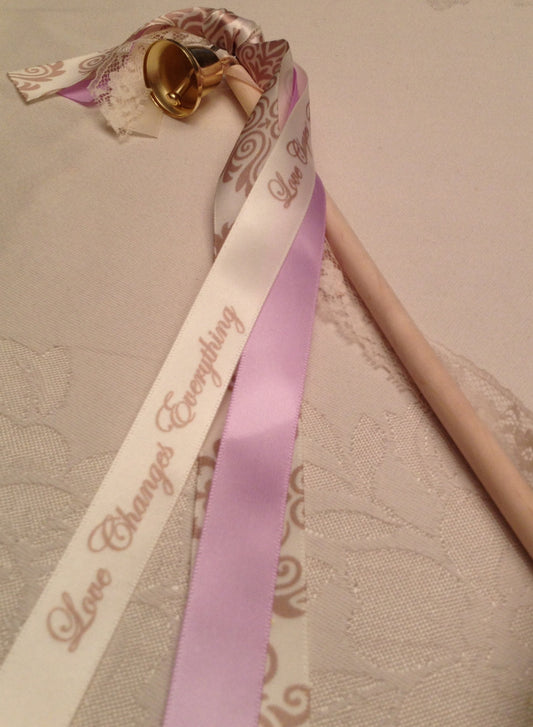 Love Changes Everything Ribbon Champagne Ink on 5/8" wide Antique White Satin Ribbon