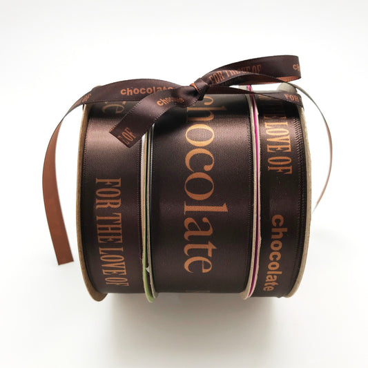 For the Love of Chocolate ribbon printed on 1.5"dijon gold
