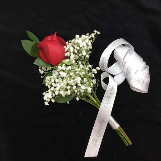 With Sympathy Ribbon gray print on 7/8" White single face satin