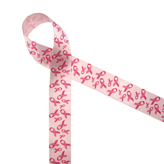 Breast Cancer Awareness ribbon printed on 5/8" and 1.5" and 1.5" pink single face satin