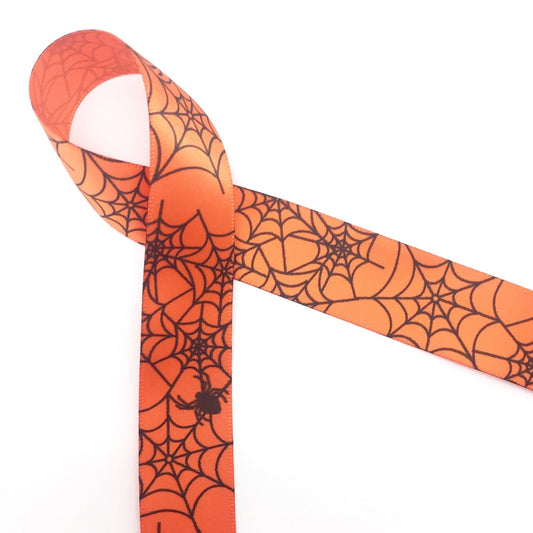 Spiders Ribbon printed on 5/8" tangerine single face satin