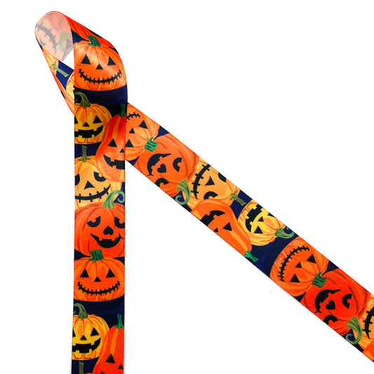 Jack O' Lantern Ribbon, on 5/8" and 7/8" White Single Face Satin