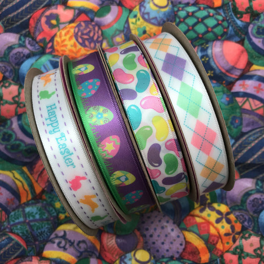 Pastel Argyle Ribbon on 5/8" white single face satin