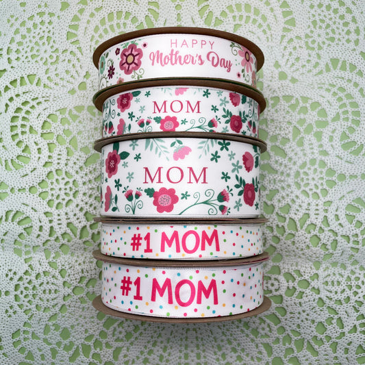 Mother's Day ribbon Mom floral ribbon printed on 1.5" white satin