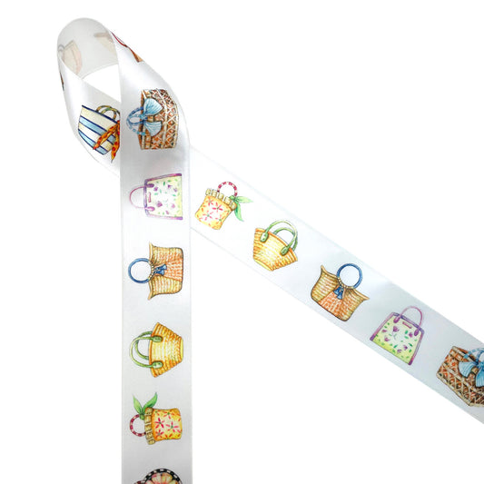 Beach Bag ribbon watercolor beach bags printed on 1.5" white satin and Grosgrain