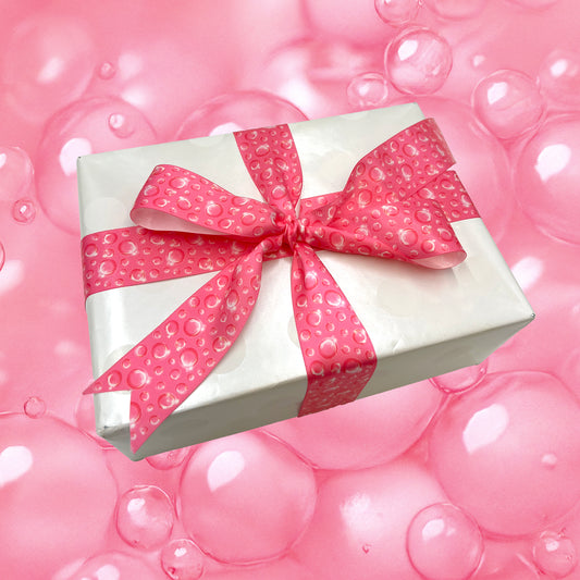 Pink Witch ribbon with bubbles for movie themed parties, party decor, gift wrap, gift baskets, sewing, quilting printed on 1.5" white satin