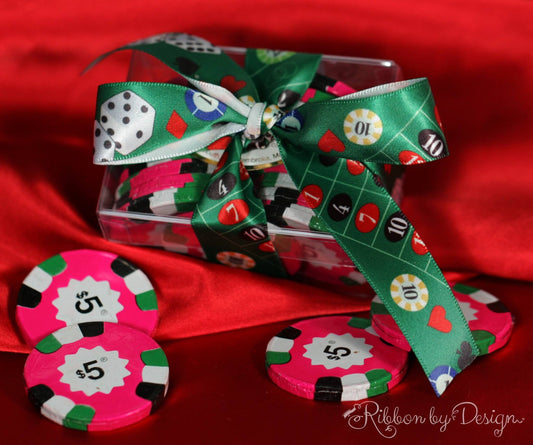 Casino Ribbon on White 5/8" Single Face Satin Ribbon