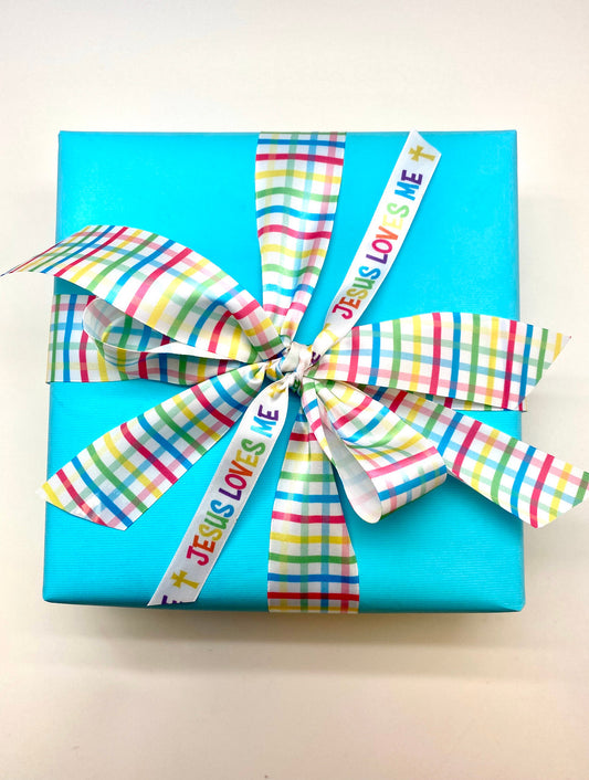 Spring Plaid Ribbon Easter ribbon printed on 1.5" white grosgrain and Satin