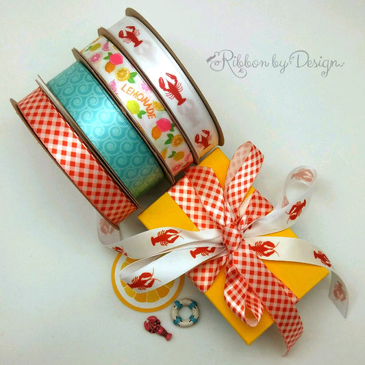 Lobster ribbon red lobsters printed on 5/8" white satin,