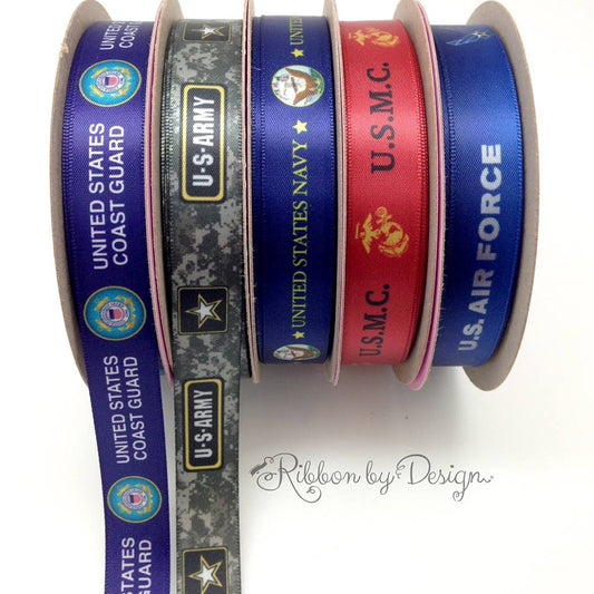 Army Logo Ribbon on Camouflage Background 5/8" and 7/8' Single Face Satin,
