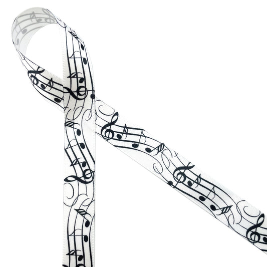 Musical Notes Ribbon in black on 5/8" white single face satin and grosgrain