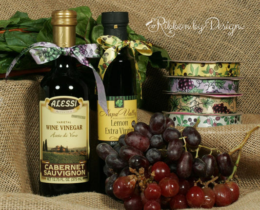 Grapes Ribbon with grape leaves on 5/8" Light Orchid single face satin