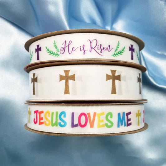 Easter Ribbon Christian He is Risen printed on 5/8" satin