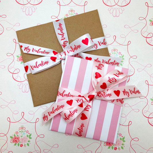Valentine ribbon My Valentine printed on 5/8" pink satin