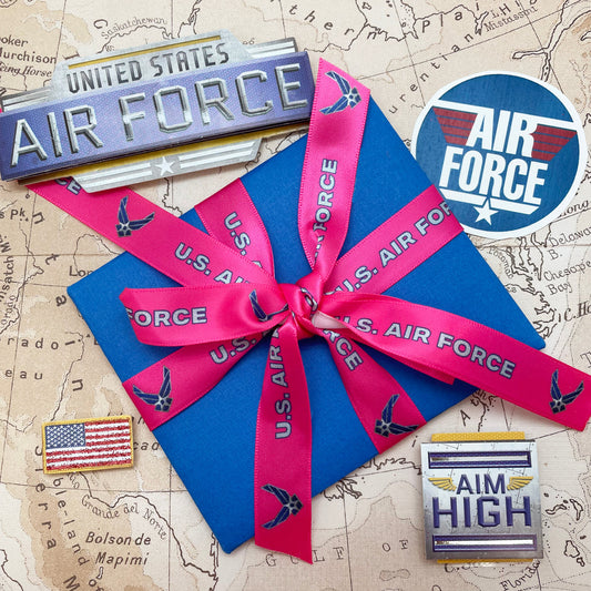 Pink Air Force ribbon honoring women pilots printed on 5/8" white satin