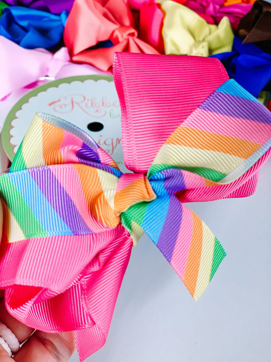 Pastel Rainbow stripes Ribbon on 1.5" white grosgrain