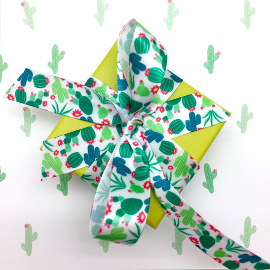 Pineapple Ribbon, Yellow and Green on 5/8" white single face satin