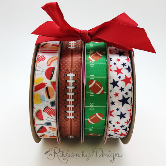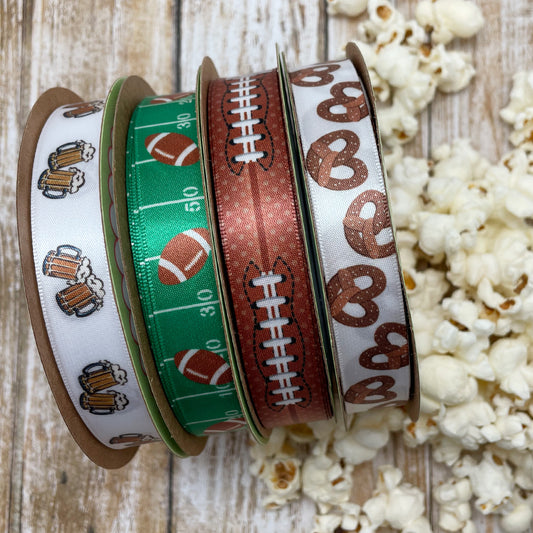 Football Ribbon tossed on Grid Iron on 5/8" white single face satin ribbon