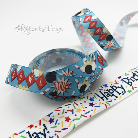 Bowling Ribbon on 5/8" White single face satin
