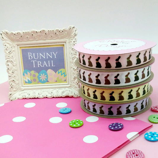 Chocolate Bunny Ribbon on 5/8" Yellow single face satin