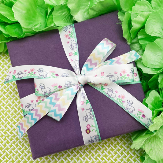 Easter ribbon Lambs ribbon for Spring printed on 7/8" white satin