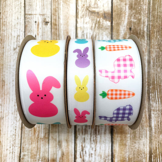 Easter ribbon peeps bunnies printed on 7/8" white satin