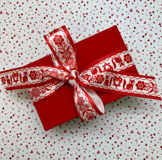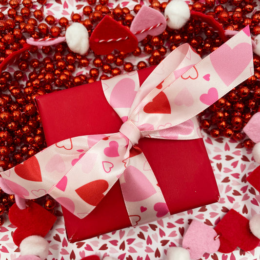 Sweet treats are being lovingly handmade or thoughtfully bought everywhere for Valentine's Day. Whether you’re creating products for purchase or baking homemade items for a party, make sure your sweet creations get the attention they deserve by wrapping them with our Valentine’s Day ribbon. In fact, we have heart ribbon in red and pink in a variety of widths. There are plenty of creative ways to incorporate ribbon on Valentine’s Day—try your hand at some DIY crafts!