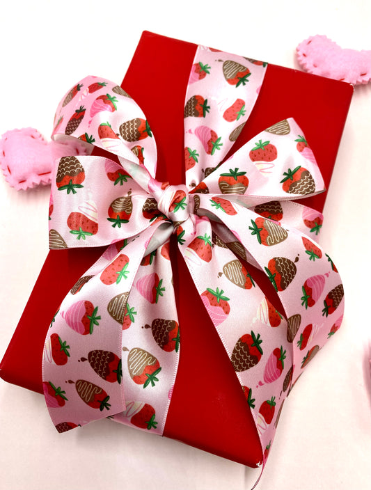 Valentine ribbon Chocolate covered strawberries printed on 1.5" light pink single face satin