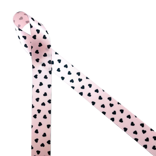 Hearts ribbon tiny black tossed hearts printed on 7/8" pink satin